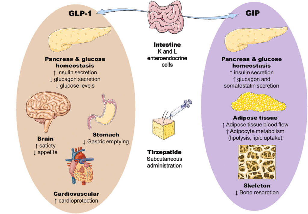 - By activating both GLP-1 and GIP receptors on pancreatic β-cells, tirzepatide enhances glucose-dependent insulin secretion, harnessing the incretin effect to improve glycemic control.